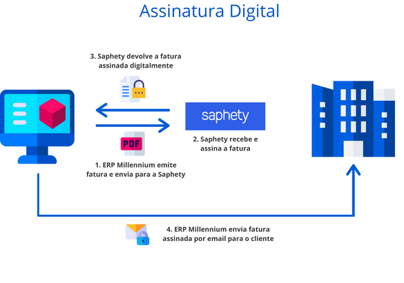 A solução desenvolvida pela WIG, integrada no ERP Millennium, permite assinar eletronicamente as suas faturas em conformidade com os Decreto-Lei anteriormente mencionados sem necessidade de documentos físicos ou introdução manual de informação. Esta solução envolve uma parceria com uma entidade certificada – a Saphety. Deste modo, pode sempre garantir o cumprimento da obrigatoriedade de ter um certificado digital qualificado emitido por uma entidade certificada autorizada que permite o reconhecimento inequívoco da pessoa ou empresa responsável pela emissão do documento em Portugal e em toda a Comunidade Europeia.